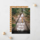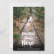 Unsere Straße beginnt hier moderne Skript-Verlobung Ankündigung fügen Ihr Foto, mit bearbeitbaren geometrischen Reifenmuster Stil und Terrakotta auf der Rückseite.