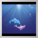 Ein lebendiges digitales Foto von zwei Delphinen, die sich im Ozean amüsieren und im Hintergrund Gelee-Fische schwingen. Ein buntes Foto für jedes Kinderzimmer, Delphin-Liebhaber und alle anderen, die gerne sehen :).