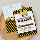 ACHTUNG! Im Bau! Feiern Sie mit unserer Party Einladung Bauen Ihre Geburtstagsparty. Die Baueinladung beinhaltet einen Kranwagen, Schmutzwagen und Betonmischer auf gelben und schwarzen Streifen. Ideal für die Geburtstagsfeier Ihres kleinen Baumeisters, oder ein Baby befindet sich im Bau.