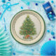 Fun Party Platte mit einem großen, dekorierten Weihnachtsbaum in der Mitte. Schmuckstücke und Geschenke machen dies zu einem lustigen Design für jedes Ihrer Weihnachtsgeschenke. Zuhause, Arbeit, offene Häuser oder jede andere Veranstaltung bringen sie die Urlaubsatmosphäre für diesen wunderbaren Zusammenzug.