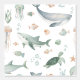 Tapete zum Thema Meerestiere für das Kinderzimmer oder Schlafzimmer Ihres kleinen Jungen. Ideal für Ihre Kleinen Kinderzimmer, Spielzimmer oder Kinderzimmer. Dieses Design umfasst niedlichen Aquarellhai, Delphin, Wal, Quallen und Fische.