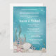 Die exklusiv von Artistical Invited entworfenen Duscheinladungen unter der Hochzeitsdusche des Meeres bieten ein einzigartiges und vollständig illustriertes Thema unter dem Thema Meer oder Aquarium. Sie sind mit einer türkisblauen Unterwasserdarstellung mit sandigem Meeresboden, Muscheln, Seetang, Korallen und Blasen versehen, die nach oben zu schweben scheinen. Ihre personalisierten Flitterwochen-Duschdetails werden individuell mit dem Text bedruckt, den Sie auf dem Wasserhintergrundbild in Weiß angeben. Wenn Sie unter dem Thema Meer oder ein Aquarium für Ihre Hochzeitsdusche suchen, sind das die Einladungen für Sie.