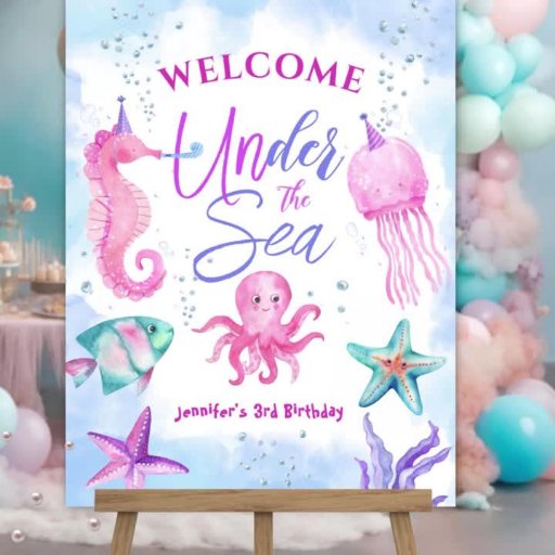 Under The Sea! Pink Ocean Girl 3rd BirthdayDesignt von H-Art Studio Design