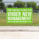 Signage-Banner für den Einzelhandel, informieren Kunden über neue Geschäftsführung und begrüßen Kunden wieder mit diesem neuen Management-Banner in blau mit dunkelblauem und weißem Text. Ideal, um wieder Geschäfte zu machen und Kunden zu warnen, sind Sie offen, aber unter neuer Verwaltung. Passen Sie Ihren eigenen Firmennamen und Ihre E-Mail-Daten an. Andere Farben sind verfügbar.