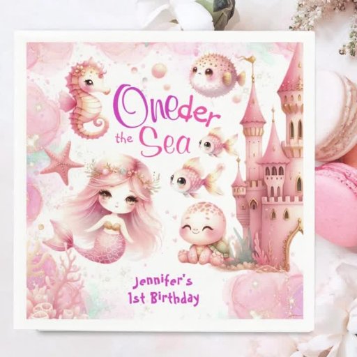 ONEder The Sea Cute Pink Birthday Party CollectionDesignt von H-Art Studio Design