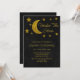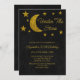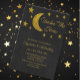 Unter den Sternen, Geburtstag, Quinceanera und süße 16 Veranstaltungen. Schwarzer Nachthimmel mit goldenem Mond und Sternen