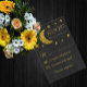 Unter den Sternen, Geburtstag, Quinceanera und süße 16 Veranstaltungen. Schwarzer Nachthimmel mit goldenem Mond und Sternen