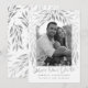 Diese hübsche Karte mit einem Foto Save the Date zeigt Imitate silber (nicht echter Folie) weiche Blätter, die die Seite des Fotos kaskadieren. Einfach mit Ihrem eigenen Text und Foto anpassen.