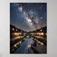 Ein friedliches Dorf Erholungen ruhig unter einem kristallklaren Nachthimmel, wo sich die majestätische Milchstraße brilliant über den Kosmos erstreckt. Stars schimmern und binkeln, ihre Reflexionen tanzen sanft auf der ruhigen Oberfläche eines schmalen Kanals. Traditionelle Holzhäuser reihen das Wasser ab, warmes Licht strahlt sanft aus ihrer Inneneinrichtung, einladend und ruhig. Auf einem Holzsteg sitzt eine einzige Figur kontemplativ und blickt auf die unendliche Weite, die in einem Moment des stillen Wunders verloren geht. Die Szene fühlt sich zutiefst emotional und kinematisch an und erfasst die Schönheit der Einsamkeit und die Weite des Universums.