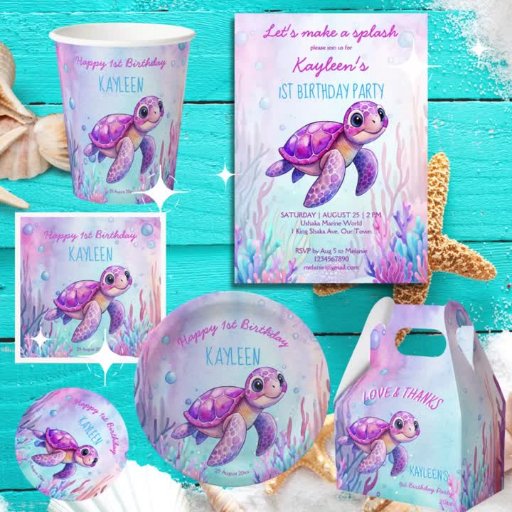 Sea turtle cute pink turtle girl birthday suppliesDesignt von Ieva Jenciute