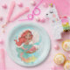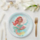 Die Meerjungfrau-Teller sind mit einer Meerjungfrau mit dunkler Haut und rotem Haar ausgestattet, die sich in einer Austern-Muschel befindet. Die Farben sind Grün, Aqua, Türkis, Gelb, Korallen, Rot, Rosa und Hellblau. Sie können mit Ihrem ersten personalisieren. Ideal für ein Untermeer-Thema oder ein Mermaid-Thema!