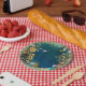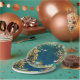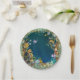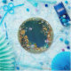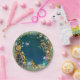 Wunderschöne Teller unter dem Meerespapier mit goldenem Seepferd, Seestern, Engelfisch und Pflanze auf einem extravagant blauen, aquamarinen und goldenen Glitzer Juwel. Sie können die Hintergrundfarbe in eine beliebige Farbe ändern, die Sie gewollt haben, und Text hinzufügen, um diese wunderschöne Unterlage für Ihre Veranstaltung zu personalisieren. Dies ist ein gedrucktes Design ohne echten Glitzer, Juwelen, etc.