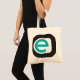 Dieses Design ist ein niedrigeres Gehäuse e. Das e ist in türkisblauem Blau mit schwarzer Kante. Dieses untere Gehäuse e Design sieht auf diesem Totbeutel gut aus