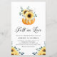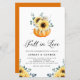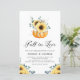 Fall in Liebe! Dieses Herbstfest ist mit Aquarellkürbis mit gelben Sonnenblumen, Baumwolle und Eukalyptus-Blätter ausgestattet. Personalisieren Sie diese durch Hinzufügen von Namen, Datum, Uhrzeit, Veranstaltungsort und anderen Veranstaltungsdetails. Diese rustikale Sonnenblume lädt zum Herbst oder Herbst Verlobungen ein.