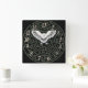 Diese Fantasy-Wanduhr verfügt über ein 13-stündiges Gesicht und ein grünes Hedgelabyrinth, das gemeinhin als Labyrinth bezeichnet wird und von einer weißen Scheuneneule in vollem Flug betont wird.