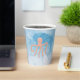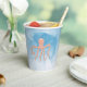 Unter dem Meerespapier Tassen. Wasserblauer Hintergrund mit niedlich rosa Oktopus.
