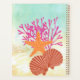 Rosa Koralle, ein orangefarbener Stern und braune Jakobsmuscheln gegen Sandbräune und Blau-Grün machen diesen Planer zu einem idealen Ort, um sich an diesen Urlaub am Strand zu erinnern!