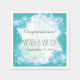 Tropisch, unter dem Meer, Hochzeiten Servietten mit individuellem Text. Dieses originelle Design ist türkisblau und blau, mit Fischkunstwerken und einer Seesterngrenze. Personalisieren Sie mit drei Zeilen Vorlagentext für eine Hochzeit am Strand.