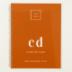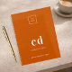 Orangefarbener Hintergrund und weißer Text. Personalisieren und fügen Sie Ihr Logo, Monogramm Initialen, Namen und ein Titeljahr. Ihr Logo sowohl vorne als auch hinten. Platz für Ihre Website-Adresse auf der Rückseite.