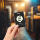 Benutzerdefiniertes schwarzes Logo, Firma, Business, minimalistisches Abzeichen. Sie können es mit Ihrem Logo, Ihrem Namen und Ihrer Website personalisieren. Einfaches Design. Minimalistische Wasserflasche. Berufliche Website.