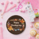 Schöne dunkelbraune Happy Thanksgiving Party Papier Teller für eine Firma zu zeigen Kunden ihre Dankbarkeit während der Feriensaison. Passen Sie Ihren Firmennamen in der Aquarellblau von orangefarbenen Blätter an. Eine tolle Dekoration für das Herbst-Marketing.