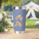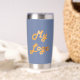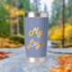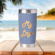 Unternehmen mit blauem Logo Thermobecher