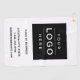 Handtuch mit Firmenmarke, berufliches Firmenlogo und individuell bevorzugte Geschäftsinformationen - Website, Standort, E-Mail, Telefon, etc. - personalisierte Texte. Die Farben Schwarz und Weiß können geändert werden.