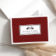 Verbreiten Sie guten Beifall diese Ferienzeit mit unserer einfachen und eleganten Karte, die für Ihr Geschäft oder UnternehmensPostsendungen perfekt ist. Ihr Feiertagsgruß und Firmennamen werden in der Mitte in der klaren schwarzen Beschriftung mit einem Paar Dollarrotwild-Silhouetteillustrationen angezeigt, die durch eine Singleschneeflocke verbunden werden, umgeben durch ein subtiles Muster der punktierten Diamanten im festlichen Feiertagsgranatsrot. Fügen Sie eine optionale innere Mitteilung unter Verwendung des bereitgestellten Feldes hinzu.