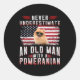 Unterschätze niemals einen alten Mann mit einem Sp Runder Aufkleber