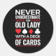 Unterschätzen Sie niemals das Deck der alten Frau Runder Aufkleber