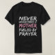 Ein motivierend Design mit der Phrase "Nie eine Mutter unterschätzen, die vom Gebet angetrieben wird" mit dem Zusatztext "Mama beten" für starke und treue Mütter.