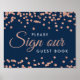 "Sign Our Wedding Guest book" Hochzeitsempfangssigne mit Rose Gold Imitate Glitzer Confetti Navy Blue Design