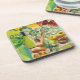Dieses Set von sechs Untersetzer mit Korkboden macht ein perfektes Sommerherbergsgeschenk, Duschvorzug oder für den eigenen Gebrauch. Schönes, buntes Design von Wein, Käse, Brot, Früchte auf grünen und weißen mexikanischen Kacheln.