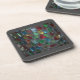 Anpassbarer Kunststoff-Untersetzer mit Korkrückenverkleidung. Es hat ein Buntglasfoto-Design. Ideal für warme oder kalte Getränke.