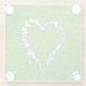 Dieser gläserne Untersetzer zeigt die Fotografie eines auffallenden Steinherzes, der sich dem lebhaften Grün des Grases widerspiegelt.