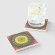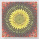 Im Zentrum dieses farbenfrohen Untersetzer liegt eine lebendige Herbstsonne.