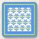 Ein Set aus eleganten, korkgedeckten Untersetzer oder Tischmatten, mit einem Jugendstil-Muster in hellblau, grün und weiß, aus einem handbemalten Design von Judy Adamson.