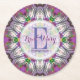 Geometrisches Mandala Hexagon Sternmuster in lila, silber und grün. Elegantes Monogramm und individuelle Name Zentrum. Hochzeit oder Verlobung am Nachmittag.