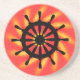 Das schwarze Schiffsrad ragt über einer gelben und roten Spirale über einem massiven Hintergrund (rot - kann individuell angepasst werden). Ideal für Wassersportler.