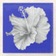 Untersetzer aus Glas mit einem weißen Hibiskus auf einem königsblauen Hintergrund. Dank der Hungryjpeg für einige Elemente in der Gestaltung.