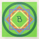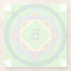 Die Quadrate in den Farben des Regenbogens (orange, gelb, rot, lila, blau) werden vom Zentrum aus vergrößert und um 90 Grad verdreht, um miteinander zu verwoben. Ein dunkelgrüner Kreis umkreist alle Quadrate und hält sie auf dem hellgrünen Hintergrund. Personalisieren Sie den zentralen Initial, der auch dunkelgrün ist, mit einem gelben Schlagschatten.