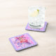 Schöner quadratischer Untersetzer oder Tischmatte mit romantischen, rosa-, lila- und lila-farbenen Wandgemälden und einer zarten, blasslila Fassade, die von Judy Adamson in Aquarellfarben gemalt wurde.