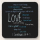 Dieser attraktive Untersetzer, den Seteigenschaftslinien von 1 Korinther-13:4 "Liebe geduldig ist, Liebe, ist nett…" nach dem Zufall gesetzt über den Untersetzer