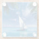 Untersetzer aus Glas mit einem Foto von einer hübschen tropischen Wasserszene mit Boot gezeigt. Passen Sie dieses Objekt an oder kaufen Sie, wie es ist.