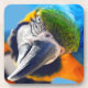 Nah-up Foto eines blauen und gelben Arschs mit Kopf gecockt an der Seite.