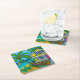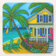 Ein Gemälde von Lisa Lorenz von einer lebhaften, glücklichen tropischen Szene eines bunten, gemütlichen Strandhauses an einem türkisfarbenen Strand. Jetzt verfügbar auf einem Set von Untersetzer, um Ihre Bar zu beleben.