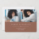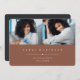 Die schlichte und moderne Ankündigung des Fotos von Abschluss umfasst zwei Fotos, die nebeneinander angeordnet sind, mit dem Namen, der Schule und dem Unterrichtsjahr des Absolventen in weißer Schrift auf einem Terrakotta-Hintergrund. Der Name und die Schule deines Absolventen erscheinen unten. Fügen Sie der Rückseite eine persönliche Nachricht und ein zusätzliches Foto hinzu.