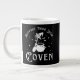 Unterstütze deinen lokalen Zirkel Riesiger Kaffeebecher. © Dark Heart Desires. Dieser gothische Kaffeebecher hat ein Design mit der Aufschrift Unterstütze deinen lokalen Zirkel.