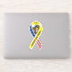 Zeigen Sie Unterstützung für einen geliebten Menschen während einer militärischen Stationierung mit diesem Combo-Aufkleber mit gelbem Band und amerikanischer Flagge. Personalisieren Sie mit einem Foto Ihres Soldaten und fügen Sie ihren Namen oder militärischen Zweig an der Spitze. "Support Our Troops" erscheint in marineblau Schrift auf einem gelben Band, während die andere Schleife des Band ein rotes, weißes und blaues Design der US Flagge aufweist.