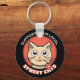 Niedlicher Katzenliebhaber Schlüsselanhänger mit einem kawaii Cartoon Kätzchen mit einer Blume und der Text Support Your Local Street Cats.